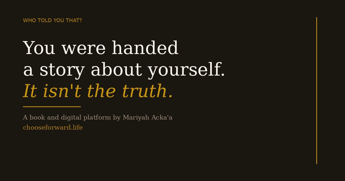 Chapter 1 is your free preview. To continue your journey through all 24 chapters — and begin the real work — get your copy of Who Told You That?.
